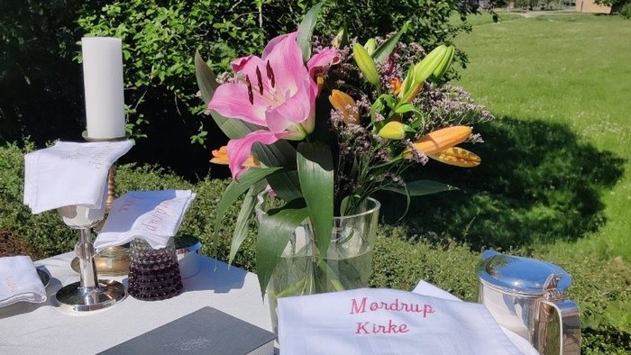 Pinse handler om fællesskab, og derfor fejrer vi gudstjenesten sammen med Sthens kirke. Gudstjenesten afholdes under åben himmel på Mørdrup Kirkes terrasse. Er vejret dårligt, rykker vi indenfor.